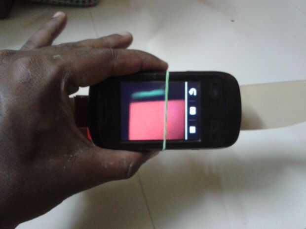 Tengo sólo un vaso 3D así que no quiero romper (si tienes múltiples quitar las hojas de color y pegar delante de dos agujeros. Atar el móvil con la ayuda de la goma de la unidad. (Vinculo móvil, accesorio y cristal juntos. Ahora encienda la cámara y tomar fotos.