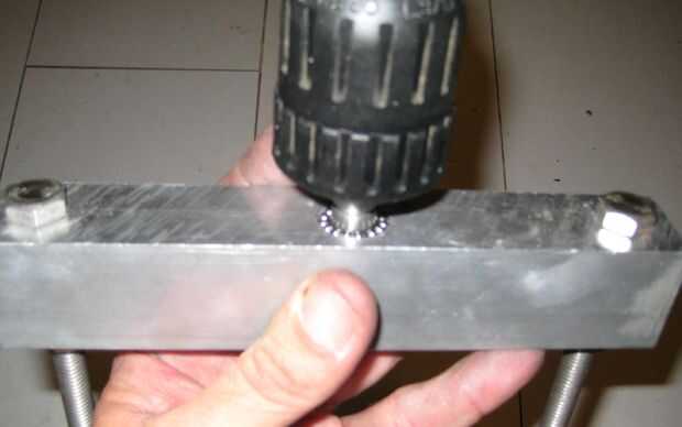 A continuación, soltar la carrera (nada más que una arandela de acero endurecida) en el agujero y llenarlo con rodamientos.