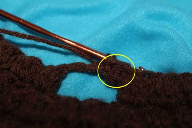 * Las motas en esta fila será al revés. Simplemente pasar al otro lado usando el dedo o ganchillo gancho *