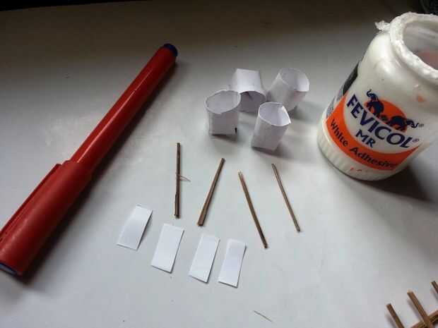 Pegue el papel en un pequeño palo y deje que el pegamento se seque.