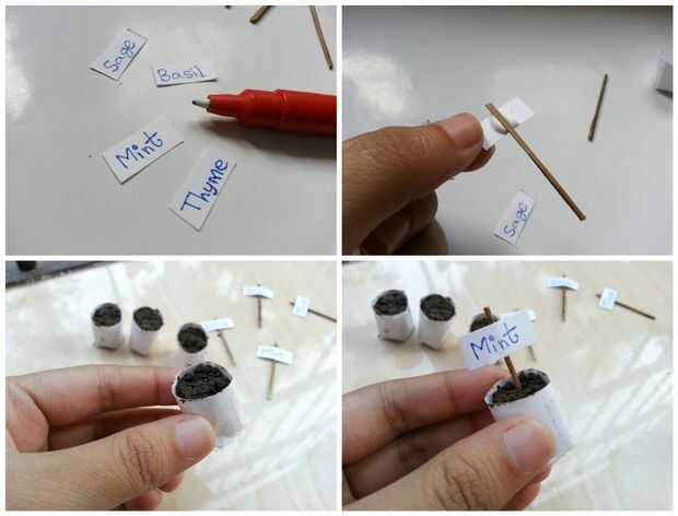 Llenar las macetas con tierra y luego empuje el marcador de la planta en él.