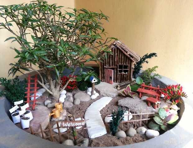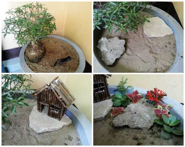 Plantado el árbol enano primero, luego agrega 3 trocitos plana de hormigón para colocar la cabina, muebles,