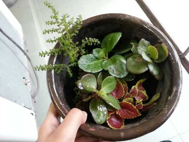 En mi mini jardín planté un árbol enano, las plantas de musgo, unas pocas plantas que requieren menos agua y menos cuidado.