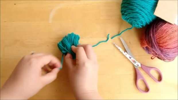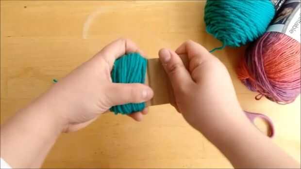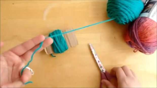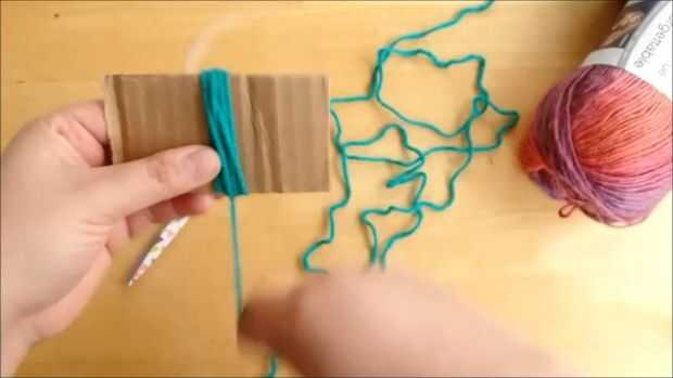 1. Enrolle hilo alrededor de cartón cerca de 60 veces y cortar el hilo cuando haya terminado