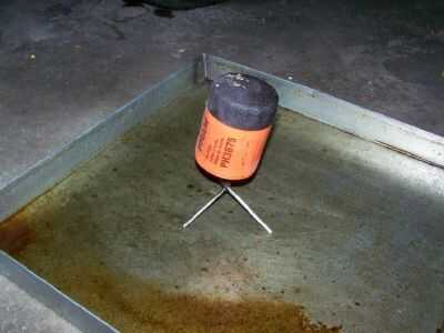 Aquí puedes ver el filtro descansando en la parte superior del soporte. Me Deslice la bandeja a una esquina y esperar un día o dos para el filtro a fin de drenar o goteo. Luego que Vierta el aceite viejo en un recipiente y disponer de ella con alguien que recicla el aceite usado.