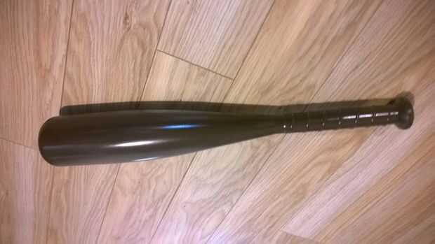 Para pintar el bate batidora usé pintura de aerosol de cuero marrón.
