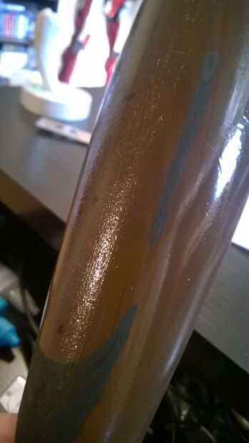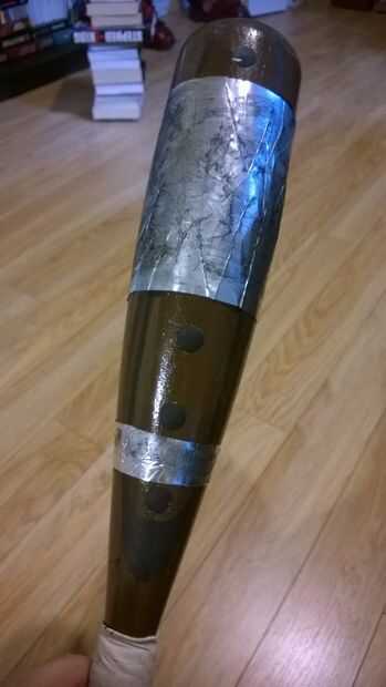 Para los "rectángulos" en el palo, he utilizado la hoja de aluminio que he pintado en color negro y difundidos la pintura con una toalla.