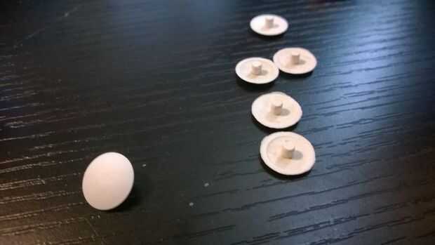 También añado los puntos negros con tapa Tornillo pintado en negro. Taladré agujeros antes de pegar en el.