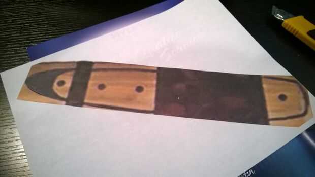 Para los detalles elegí un patrón que encontré en internet. Cortar el patrón en una hoja de papel. Luego, poner el papel en el bate de golpeador y el patrón en color negro con un cepillo de la pintura.