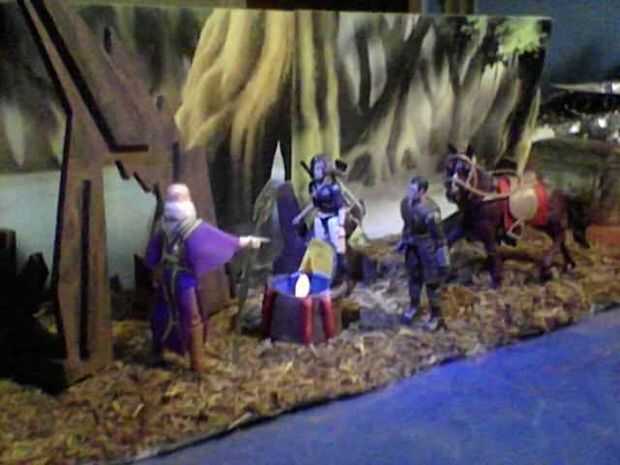 Temprana prueba foto del diorama. El altar está en esta foto. El asistente que compré hace años, pero los otros dos higos modificado para requisitos particulares.