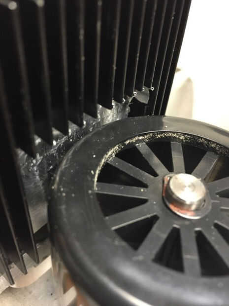 Yo solo corte las aletas del centro. Estuve tentado a montar verticalmente y molino de una curva que empareja el diámetro del ventilador pero que es demasiado esfuerzo para mí.