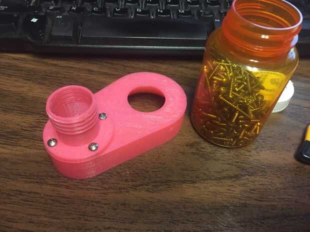 Me sacó el tubo de descarga en forma de u y medido por lo que pude moldear un pezón para caber. Que se une con 3 #6 tornillos penetrantes y un solo tornillo y tuerca para el agujero al aire libre. Iba a añadir un buje al modelo podría utilizar a tornillos autoroscantes que todos pero una tuerca pequeña es mucho menos obstructiva.