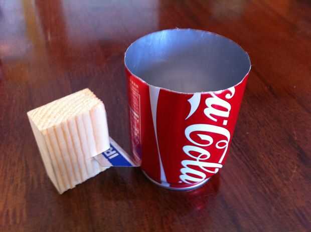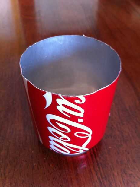 Después de que termino de cortar la lata de la estufa, voltee la plantilla y retire la tapa de la lata, así que me quedo con un tubo de aluminio.  Luego corté el tubo de un lado para tener una "hoja".
