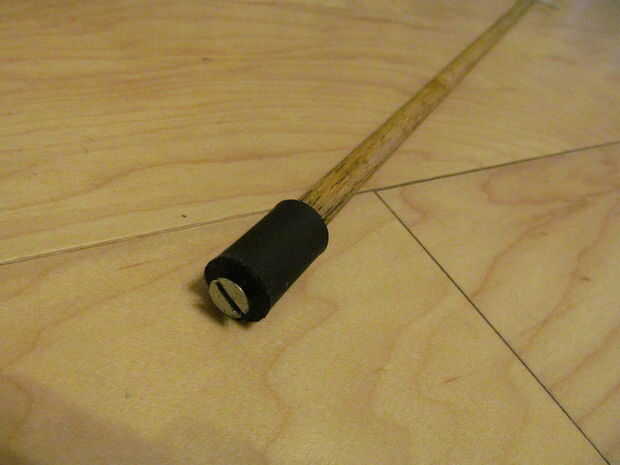 Ahora para el émbolo: tomar un taco que es cerca de tres pulgadas más largas que el tubo de la bomba. Obtener su tapón de goma y hacer un agujero en él. Poner un tornillo a través del agujero y atornille el tapón al final de la espiga. El tapón debe ser capaz de ajustar libremente en el tubo de la bomba. Ahora apriete el tornillo y el tapón es más amplia. Apriétela hasta apenas poder deslizarse con esfuerzo a lo largo del tubo de la bomba. Probablemente podría usar jalea de petróleo o vaselina para lubricar el émbolo y el sello de aumentar pero no tenía nada de esto así que tuve que hacer sin ella. Otra buena idea es poner un tornillo o clavo en la parte superior de la espiga para evitar que Deslice hacia abajo el tubo de bomba y quedarse atascados en la válvula unidireccional. Es un dolor que salir cuando se queda pegado ahí.