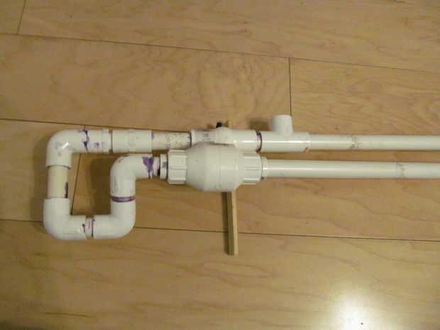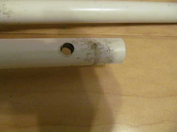 Ahora que tiene dos componentes, ahora es momento para perforar los agujeros. Tire el émbolo del tubo hasta que quede una pulgada o tan del final. Luego perfore cuatro agujeros en la tubería de 1/2" por debajo del borde inferior del émbolo en la dirección del conjunto de valores. Estos agujeros permiten que el aire entrar en el tubo sin tener que tirar el émbolo completamente fuera del tubo.