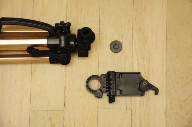 Con la sierra para metales, Sierra toda la longitud de la pata de trípode más delgada. Asegúrese de tener al menos 24cm o más. (Quitado el lengeth completo. Puede hacer sus propios ajustes si te gusta la suya para ser más largo)