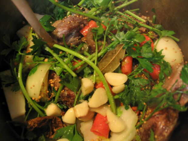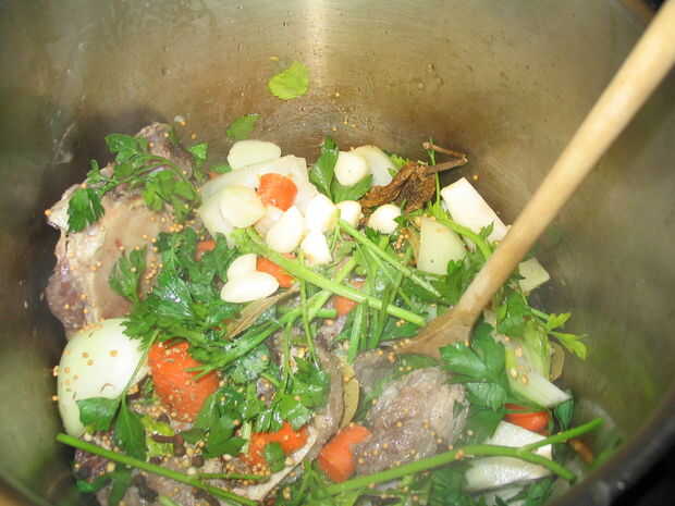 si tienes una olla a presión esta es una forma rápida de obtener una comida deliciosa carne sin la espera 3 + horas.Ingredientes:-losa 1 de carne, lavado.-12 granos de pimienta entera negra-3 muelles de perejil-1 hoja de laurel-1 cebolla-alrededor de