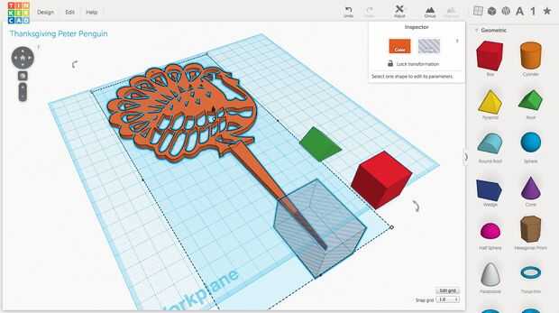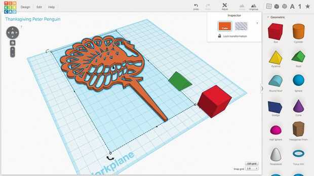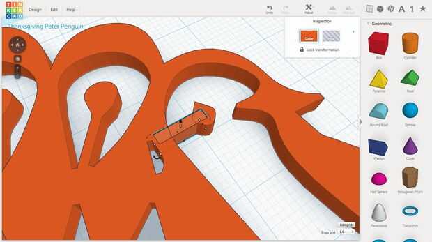 La belleza de Tinkercad es en el uso de formas simples para crear otros más complejos. En la foto 3, vemos el techo verde original y caja roja que solía hacer la espiga. Sólo arrastre las formas geométricas menú desplegable a la derecha y utilice la gira flechas y blanco escala manijas para crear el punto. No quiero a mis ojos, así que cortan el sostenido poco a convertir el cuadro en un agujero - esencialmente un negativo del espacio que, cuando se combina con un corte sólido, a lo que se superpone.