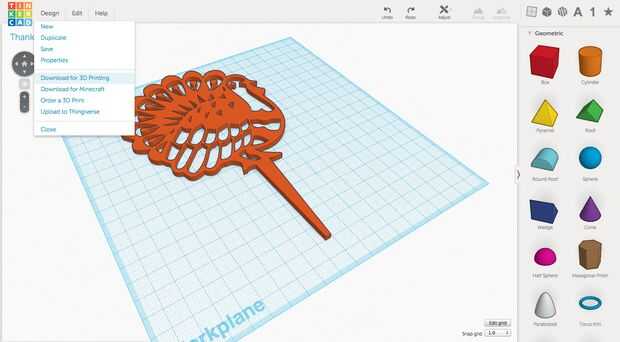 Cuando esté satisfecho con su diseño, puede imprimir utilizando su impresora 3D casera o a través de un servicio como ejes 3D Shapeways.