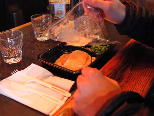 2) una comida para microondas (preferiblemente algún tipo de cena del pavo)