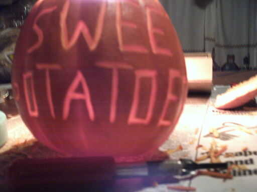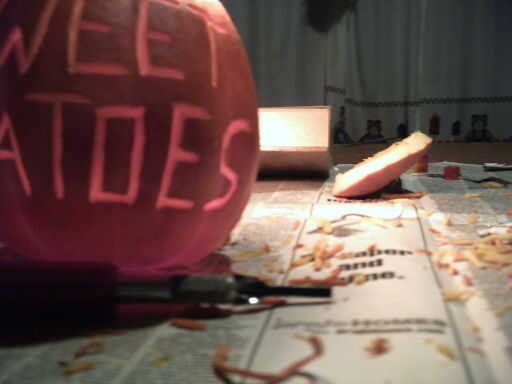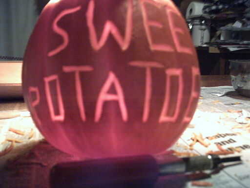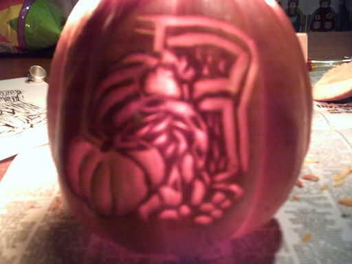 Aquí está la diversión parte (especialmente si sus habilidades de talla son como el mio ;)). Utilice sus cuchillos de talla para tallar lejos sólo las capas exteriores de la calabaza. Esto creará un resplandor desde dentro. Sólo tienes que seguir el esquema y cuidadosamente retire las capas. Si usted quiere asegurarse de que la luz puede hacerlo a través de, acaba de poner una pequeña vela o luz interior. Una vez hayas completado tu escena, usted puede decidir a tallar en la calabaza qué tipo de comida está dentro o no. Si decides a tallar el nombre del alimento en la calabaza, le sugiero hacerlo en el lado opuesto de la escena. Este tiempo ayudar a identificar qué tipo de comida que sostiene la calabaza.