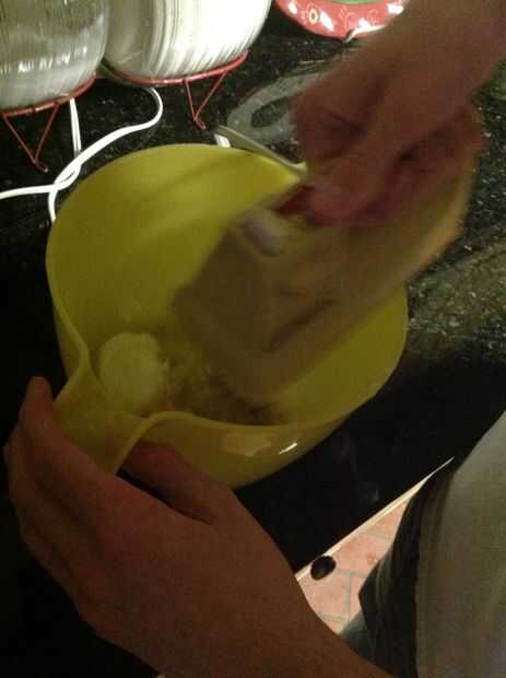 Mezcle 3/4 de taza de Crisco, 1 taza de azúcar, 2 huevos, 1 cucharadita de vainilla en un recipiente completamente.