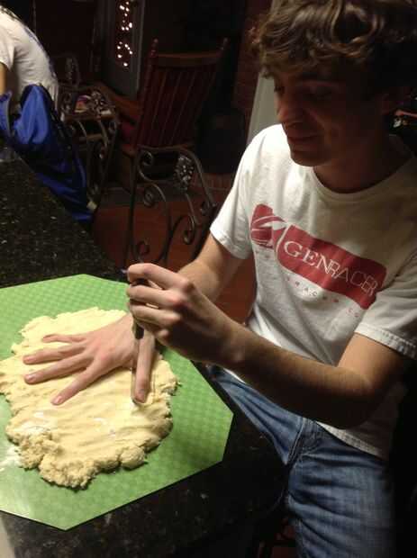 Ponga su mano en la masa y utilice un cuchillo para cortar un contorno de la misma en la masa.