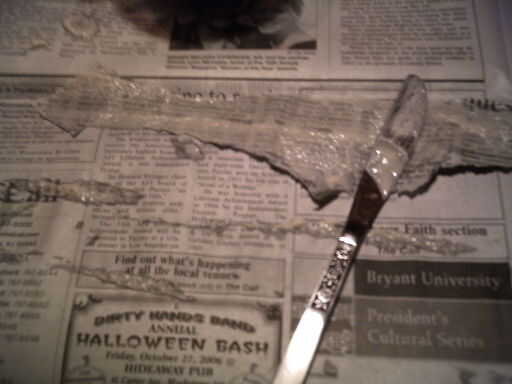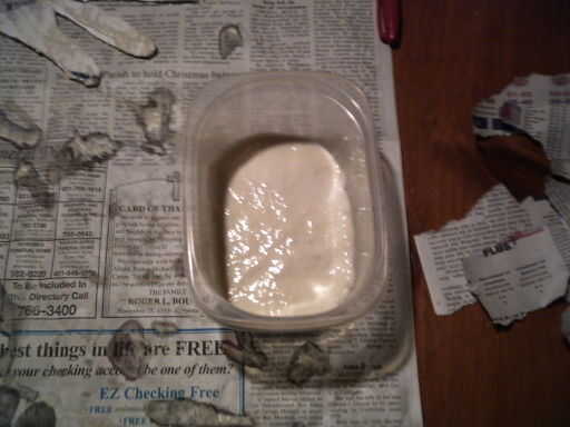Ahora hay varias maneras de aplicar esta mezcla a diario. Puede utilizar una cuchara o un cuchillo y se aplican directamente al papel (o también se puede utilizar el dedo). Otra forma sería colocar la mezcla en un recipiente largo y sumerge el periódico en la mezcla como sean necesarias. Personalmente prefiero el método de envase largo junto con mi dedo también.