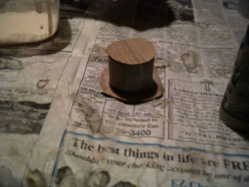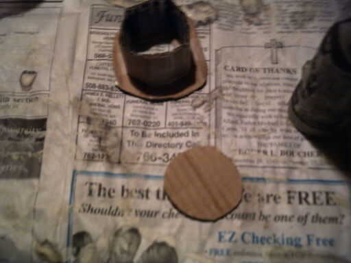 Cortar un pice de cartulina de 1" por 6" y Envuélvala alrededor de la parte superior del tubo de papel. Ajuste como sea necesario hasta que tenga un poco de disuelto círculo más grande y luego el tubo. Ahora esta cinta a sí mismo. Sacar el tubo. Cortar un círculo de cartón que el borde del sombrero (así haga el voladizo tan amplio como quieras). Coloque la primera pieza sobre la llanta y trace un círculo alittle más pequeño entonces la "pared" del sombrero en el borde. Recorta el círculo y tirarla. Ahora intenta la pared del sombrero en el borde del centro. Con cinta adhesiva. Por último, cortar un círculo de cartón más para que se ajuste en la parte superior del sombrero. La cinta no en la parte superior.