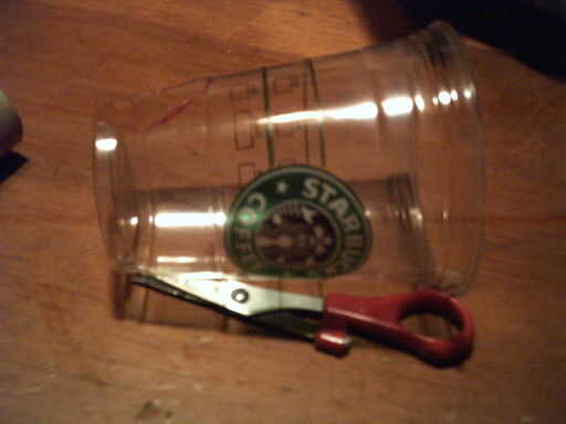 Tomar el vaso de plástico y trace y corte un esquema del tubo de toalla de papel cerca de la parte inferior de la Copa. Hacer el agujero un poco más grandes entonces el tubo para que el tubo se puede mover hacia los lados un poco. Sacar el tubo.