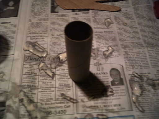 Ya sido hecho para ti... es el tubo de papel higiénico (si usted usa un tubo de toalla de papel, cortar a la medida de un tubo de papel higiénico). Más tarde se hará el pico, pero eso es información...