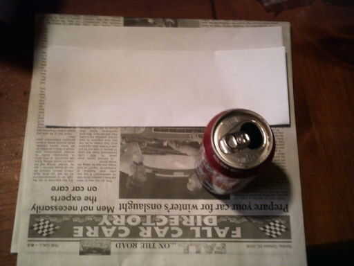 Tome un pedazo de papel de copia y envolver alrededor de un refresco vacía puede (después de plegado o corte a medida). Pegue el papel sobre sí mismo. Salga del papel y engrasar la lata con aceite/Crisco y deslizar el papel hacia atrás (opcional).