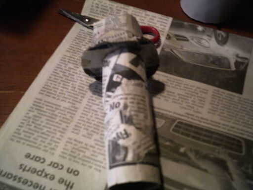 3. colocar las plumas en el extremo abierto del cuerpo utilizando al menos 3 capas de papel maiche.