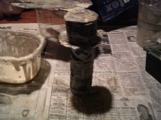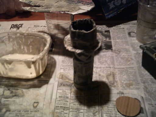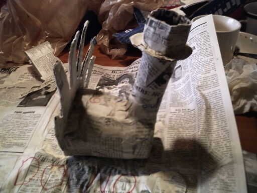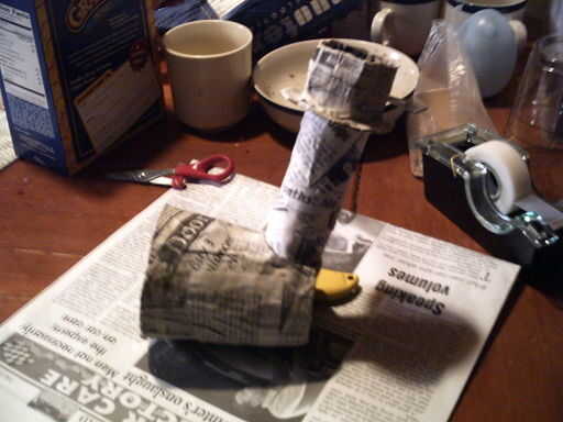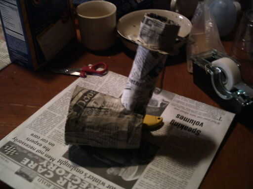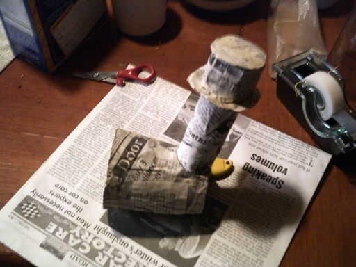 1. Coloque el sombrero (menos la parte superior) a la pieza de cuello, cabeza con cinta. Después de que usted está satisfecho con cómo se ve, usan papel maiche en la articulación para mantener juntos mejor.