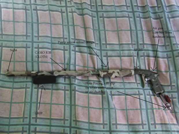 trata de cómo hacer una pistola de aire que es un solo tiro (dispara 1 dardos) que utiliza la acción de la bomba y se parece a una Escopeta dispara sobre dos veces tan lejos mi cerbatana que he hecho (la puede encontrar en este sitio) que está a unos 100m y usé el aire para disparar la pistola de aire del compresser en mi galpón y que utiliza toda la presión de la materia para que pueda imagen hasta qué punto dispararían con una cámara de aire