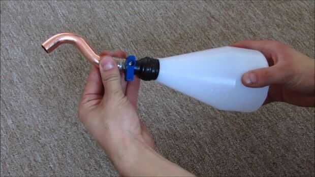 Lo siguiente es tomar el tubo del conector en forma de S (el mío es 15 mm de diámetro) y pegarlo sobre la válvula de la plomería. Fíjelo con cinta aislante de algunos. Válvula de la plomería será un disparador.