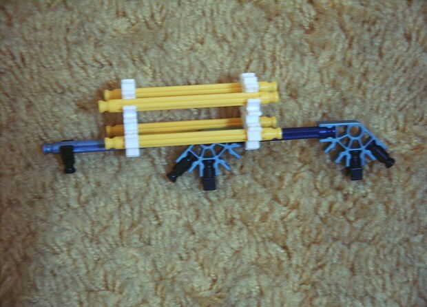este es mi 4 º arma de k'nex, es muy compacto con una gran cantidad de munición posiblemente un verdadero disparador (I'' m no muy seguro de lo que un verdadero disparador es que tira de espalda recta) tiene bastante buena potencia y precisión y sólo