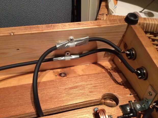 usé clips P para fijar el cable de guitarra a la Junta para que los empalmes de la soldadura no pueden ser halados. Una buena opción barata y todavía tienen el 96% de los paquetes para usar en otros proyectos.