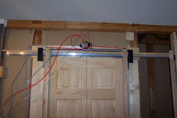 Con los dos soportes fabricado e instalado, pienso montar los dos pistones de 16" encima de la puerta, lado a lado. Aire suministrado a la parte posterior de los pistones abriría las puertas y aire suministrado a la parte delantera de los pistones cerraría las puertas, como se ve abajo. Preparado encima de la válvula temporalmente para probar todo.