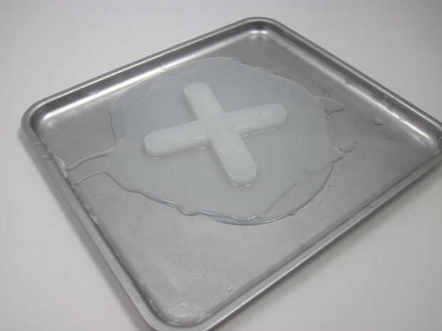 Esperar 4 horas a temperatura ambiente (o 10 minutos en un horno a 150ºF - siga los consejos de seguridad del paso 5) para la "capa de pegamento" para solidificar, vinculación a las capas superior e inferior del robot. Compruebe que la nueva capa y sello alrededor del perímetro exterior del robot es sólidos y elástica (no pegajosa/liquidez) antes de proceder al siguiente paso.