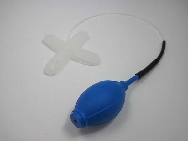Nota: Si usas el Polaroid Super ventilador, quite la pieza de goma en el extremo de la boquilla de plástico, y tubo de goma de 1/8" ID debe caber directamente en la boquilla de plástico. Si utilizas una bombilla de squeeze de otra marca, puede que necesite utilizar un pedazo adicional de tubo de goma con un diámetro como un adaptador (como el ilustrado aquí).