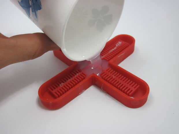 Vierta lentamente el Ecoflex mezclado en su molde impreso en 3D. El material es muy viscoso por lo que fluirá lentamente - no verter demasiado rápido! Llenar el molde hasta el borde superior. Una vez lleno, espere unos cinco minutos para las burbujas de aire en la mezcla. Usted puede "pop" burbujas de aire con un agitador del café, lápiz o bolígrafo para acelerar el proceso a lo largo.
