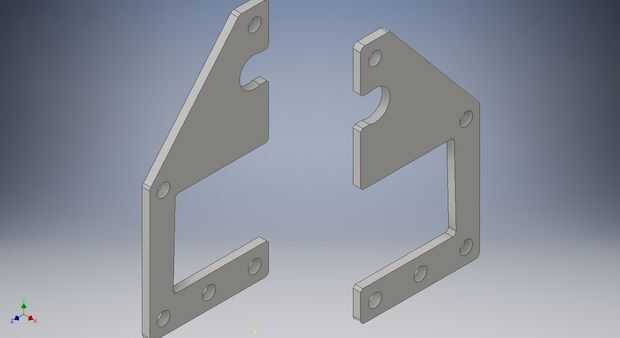 o GoBetween2, esta pieza fue creada por proyección de la sección transversal de la GoBetween en un plano de trabajo y sacando dos agujeros del perno y una abertura más o menos concéntrica al 2" servo doble brazo de Hitec.