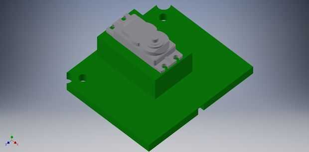 o ServoMount – se trataba de la primera parte que he creado. Dibujé por crear un plano de trabajo dentro de la caja y utilizar un fichero .stl importado de un servo similar (de idénticas dimensiones.) Para este proyecto imprimí esta parte con relleno 60%.