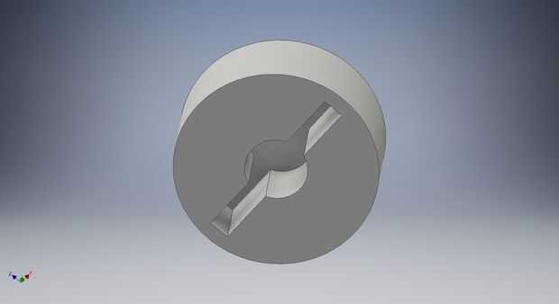 o GoBetween – se trata de una 3 1/8" cilindro con un hueco rectangular que se adapta perfectamente un ½" Hayward PVC bola válvula. El ajuste se determinó midiendo cuidadosamente la dimensión de la brida de tres representante válvulas de Hayward. Tengo que añadir dos agujero de perno a esta parte y para este proyecto cuidadosamente perno agujeros perforados a través de mi relleno 60% parte final
