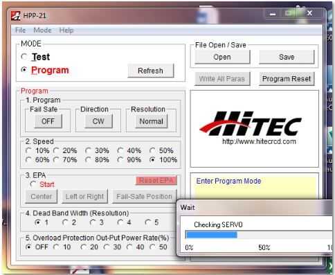 Servo HITEC HS-M7990TH monstruo par requiere previa programación con el fácil de usar y entender HPP21 Hitec PC programador, soporte software e INSALUD una batería completamente cargada para poder. Por favor consulte las dos capturas de pantalla del software GUI. Utilice la página de prueba para familiarizarse con su servo un poco antes de pasar a la programación. En la página de programación que desea hacer un par de cosas importantes. Sobre todo, desea establecer a la izquierda y derecha posiciones posición para que coincida con el ángulo abierto y cerrado real de la válvula Hayward (Nota: vueltas menos de 90 grados). También quiere reducir la velocidad del Servo al 20%, cambiar el ancho de banda muerto 5 y el de la sobrecarga protección potencia salida valorar al 80%. Una vez que usted toma el cuidado de estas cosas te asegurarás que no matar este servo caro como está luchando para cerrar una válvula ya cerrada. Reducir la velocidad reduce el impacto y el tirón al servo y Asamblea General. Ancho de banda muerta da el servo más o menos "juego" en una posición. Protección de sobrecarga en 80% significa que si el servo está produciendo "puesto par" consumo de energía se reducirá al 80% para evitar la sobrecarga; El servo no serán capaces de girar y agotará la batería pero al menos no ser destruido. Tenga cuidado en este Lea todas las instrucciones de Hitec y conocer bien el servo.