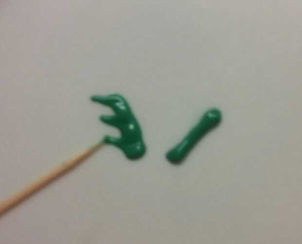 Usando un palillo de dientes (y mientras el chocolate se derrita aún!), arrastre tres líneas casi a 90 grados de una de las dos líneas de su casi-V. Una vez más, ver foto para visual.