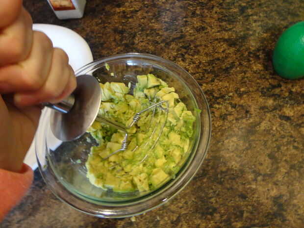 También puede triturar con un tenedor, cuchara, trituradora de la patata o los dedos.