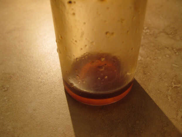 Hay un poco de espesor alcohol, azúcar y hash solución de aceite en la parte inferior de la jarra. Esta materia es bastante potente! Puede ser usado como tintura o disuelto en el ron más y disfrutar de un cóctel. Mis planes implican rociar algunos sobre un helado de chocolate caliente.