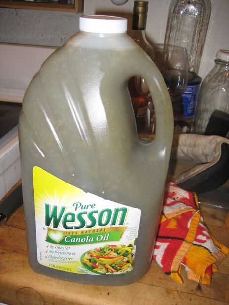 Ahora embudo detrás en su galón 1 botella de aceite de Canola (o varias botellas si no podía comprarlo 1 envase).